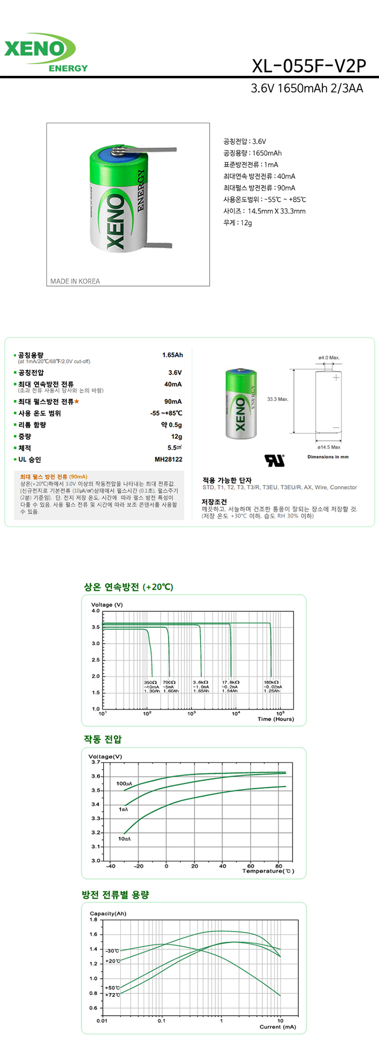 [PLC/열량계 배터리] 제노에너지 XENO XL-055F 1:1핀타입 2/3AA사이즈 3.6V 1650mAh