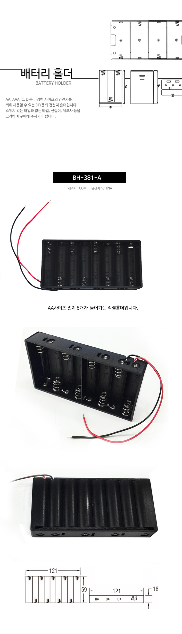 [AA사이즈 홀더] COMF 8구 선타입 BH-381-A