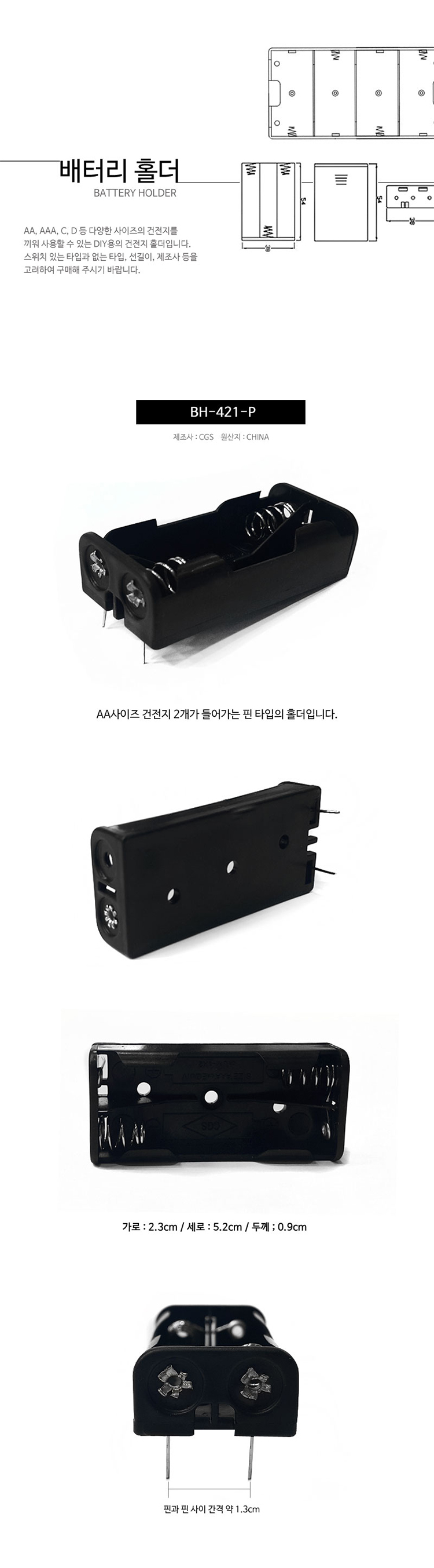 [AAA사이즈 홀더] CGS 2구 핀타입 BH-421-P