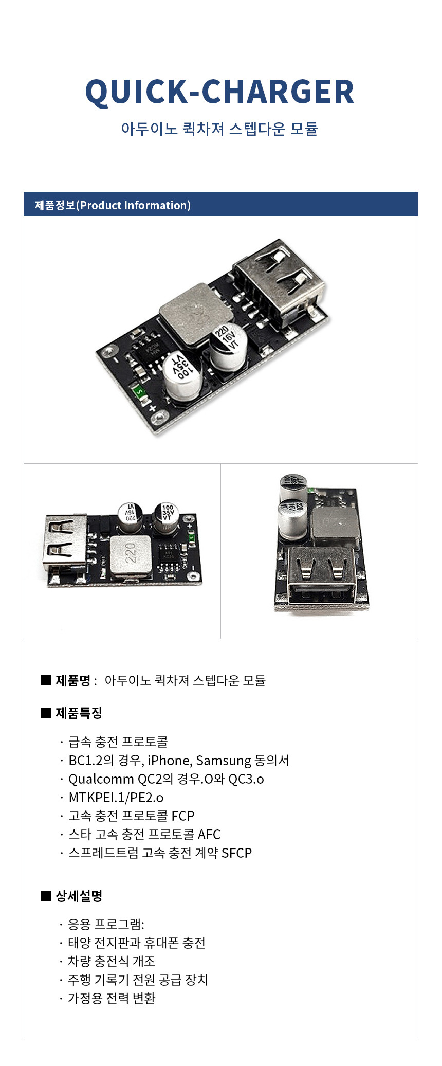 아이폰, 삼성폰 호환 고속충전 모듈입니다. [입력전압 6V~32V ,과전압,과열 보호]